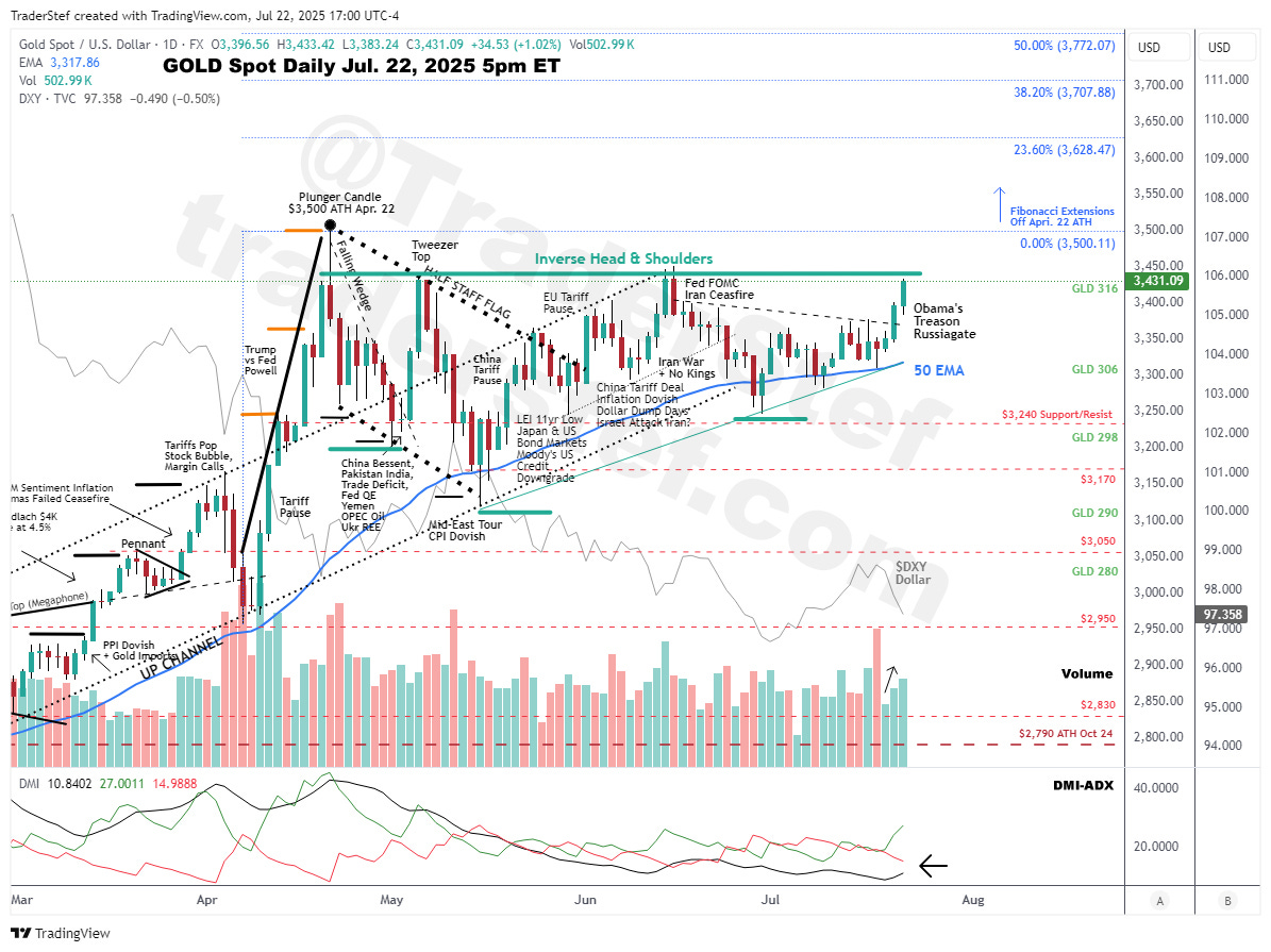 Here is the Gold Spot daily chart as of 5pm ET on Jul. 22, 2025: